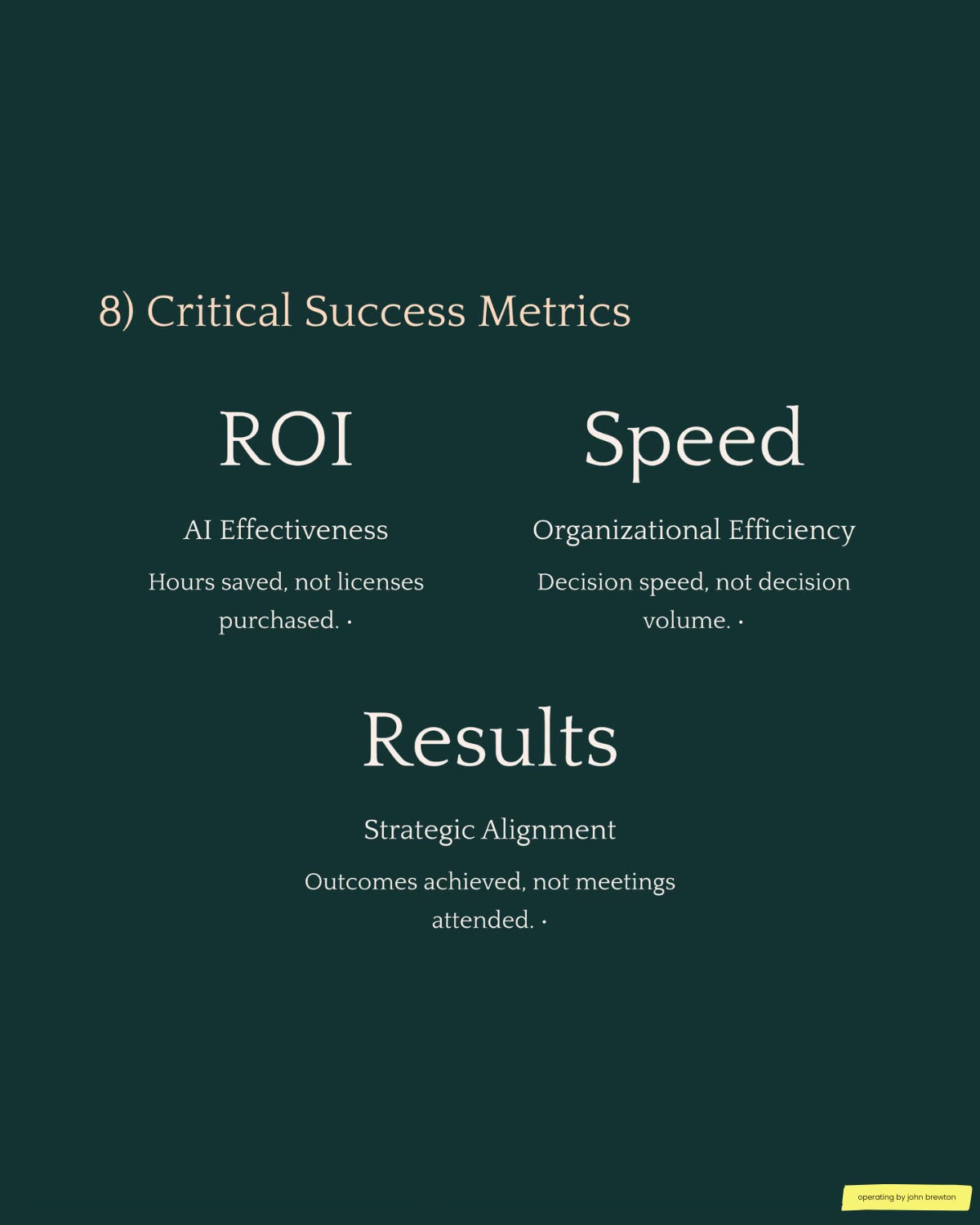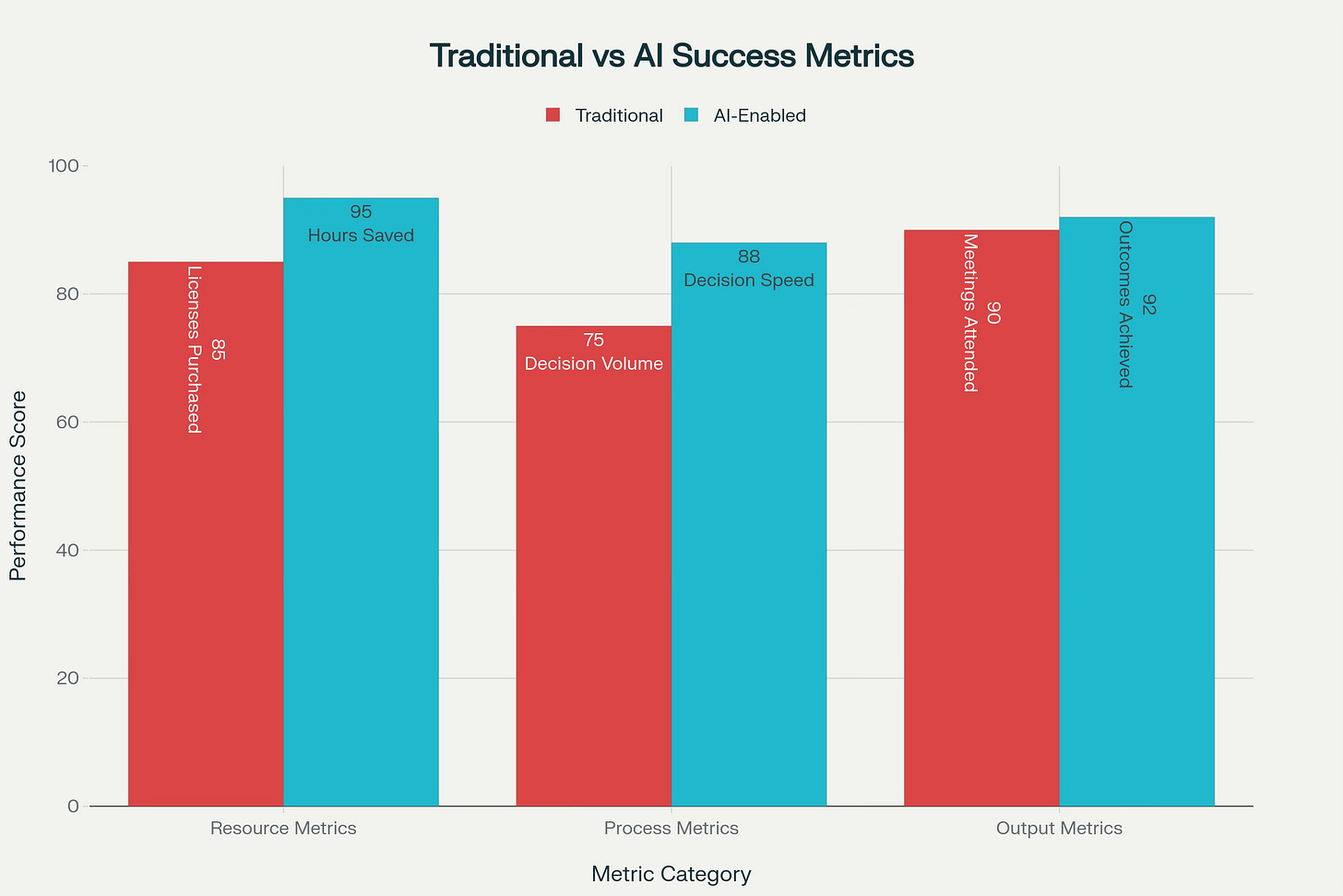 Shift measurement from inputs and activity, licenses, meeting count, decision volume, to results, hours saved, decision speed, outcomes achieved.